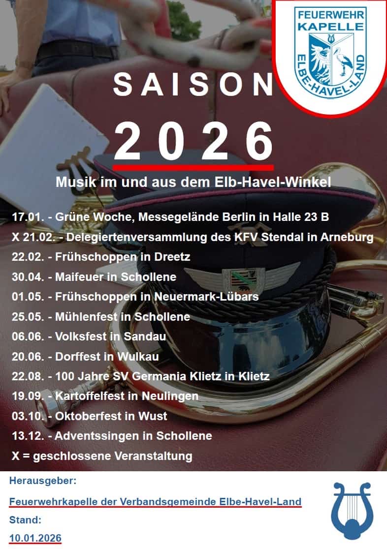 | 13.01.26 | 14:00 - 16:00 Uhr | Dorfgemeinschaftshaus Scharlibbe | Seniorennachmittag | Scharlibber Freunde e.V. |